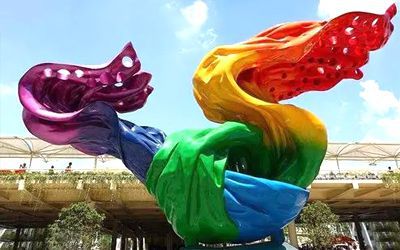 彩色不銹鋼雕塑是結合噴漆制作而成,在雕塑成形之后只需要簡單的打磨,然后刮膩子、噴漆,使得作品能夠表現豐富的色彩。相比鏡面、拉絲等不銹鋼雕塑的制作工藝來說,噴漆不銹鋼雕塑色彩表現豐富、耐用性下降,在長期的日曬雨淋作用下,可能出現起殼、顏色脫落的情況。